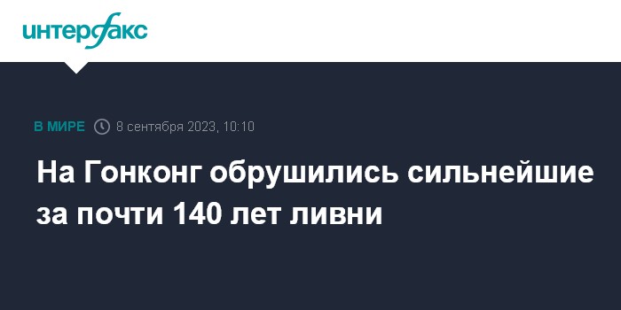 Москва. 8 сентября. INTERFAX.RU - Сильнейшие с 1884 года дожди в Гонконге привели к мощным наводнениям, сообщают азиатские СМИ.