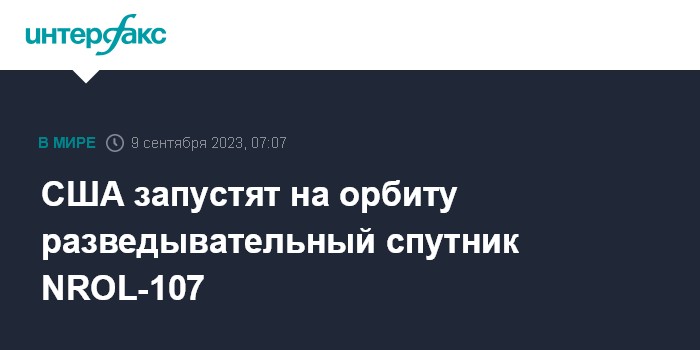 Москва. 9 сентября. INTERFAX.RU - Ракета тяжелого класса Atlas V в субботу стартует на орбиту со спутником NROL-107 в интересах Национального управления военно-космической разведки и Космических сил США, сообщает компания-разработчик носителя United Launch Alliance (ULA).