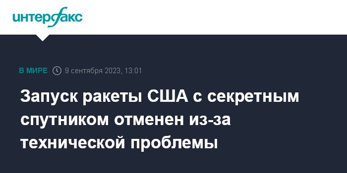 Запуск ракеты США с секретным спутником отменен из-за технической проблемы