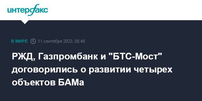 РЖД, Газпромбанк и "БТС-Мост" договорились о развитии четырех объектов БАМа