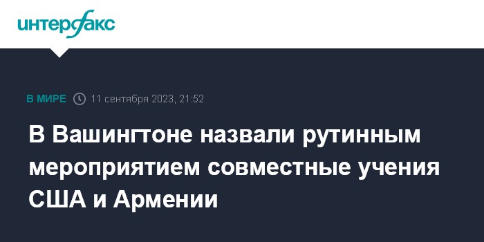 Москва. 11 сентября. INTERFAX.RU - Начавшиеся на этой неделе совместные военные учения США и Армении следует считать рутинным мероприятием, никак не связанным с какими-либо событиями в регионе, заявил в понедельник представитель Госдепа Мэттью Миллер.