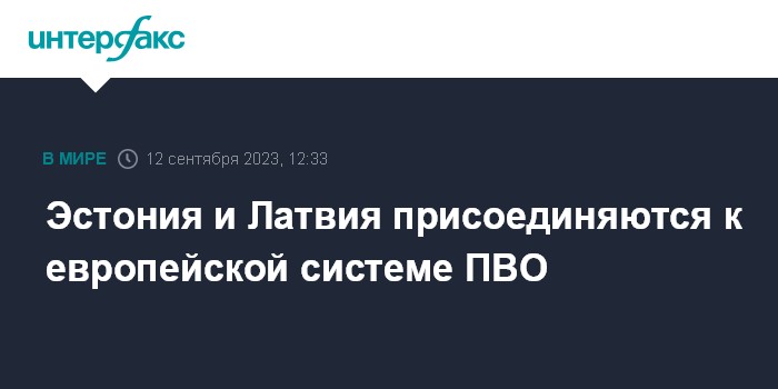 Москва. 12 сентября. INTERFAX.RU - Министры обороны Эстонии Ханно Певкур и Латвии Инара Мурниеце подписали с министром обороны Германии Борисом Писториусом письмо о намерениях присоединиться к системе ПВО ЕС "Европейский небесный щит" (European Sky Shield Initiative, ESSI), сообщила пресс-служба немецкой оборонной компании Diehl Defense, на площадке которой произошло подписание.