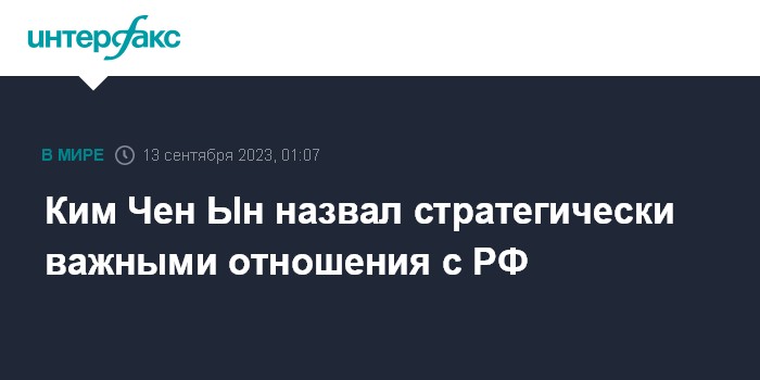 Москва. 13 сентября. INTERFAX.RU - Лидер КНДР Ким Чен Ын заявил, что его визит в РФ - признак стратегического характера отношений между обеими странами, сообщает агентство "Ренхап" со ссылкой на официальные северокорейские СМИ.