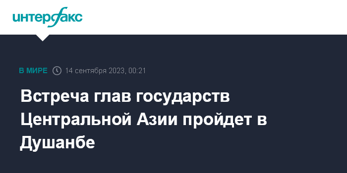 Москва. 14 сентября. INTERFAX.RU - Пятая консультативная встреча глав государств Центральной Азии состоится 14-15 сентября в городе Душанбе под председательством президента Таджикистана Эмомали Рахмона, сообщили в МИД республики.