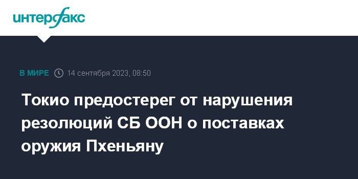 Токио предостерег от нарушения резолюций СБ ООН о поставках оружия Пхеньяну