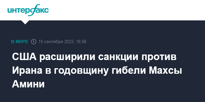 Президент США Джо Байден через пресс-службу Белого дома сообщил, что санкции введены против "самых вопиющих нарушителей прав человека" в годовщину смерти Махсы Амини, погибшей в 2022 году после задержания за неправильное ношение хиджаба.