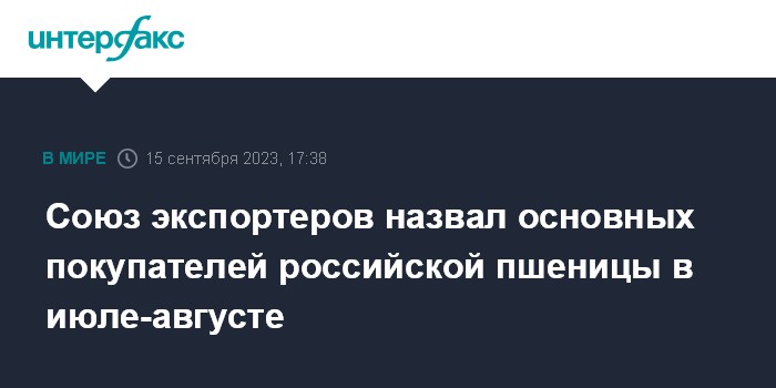 Союз экспортеров назвал основных покупателей российской пшеницы в июле-августе