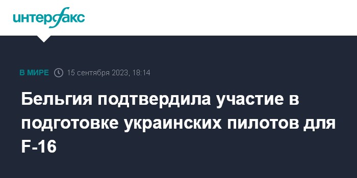 Москва. 15 сентября. INTERFAX.RU - Министр обороны Бельгии Людивин Дедондер заявила, что федеральное правительство подтвердило в пятницу участие бельгийской стороны в подготовке украинских пилотов для управления многоцелевыми истребителями F-16.