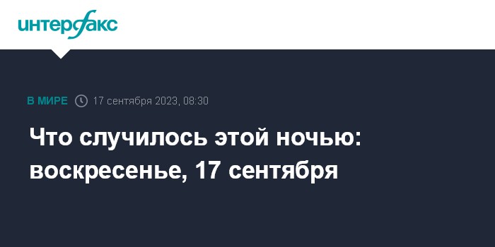 Москва. 17 сентября. INTERFAX.RU - Краткая сводка событий, произошедших к утру: