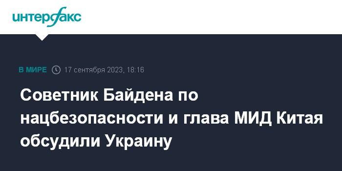 Советник Байдена по нацбезопасности и глава МИД Китая обсудили Украину