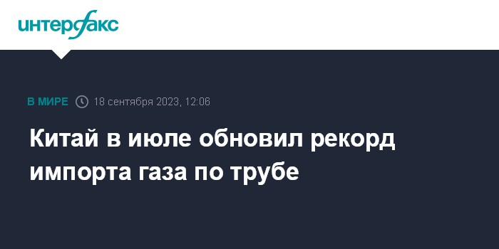 Москва. 18 сентября. INTERFAX.RU - Китай в июле продолжил обновлять рекордные показатели по импорту трубопроводного газа. На глобальном рынке сжиженного природного газа народная республика остается крупнейшим импортером в мире, компенсируя падение потребления в других центрах спроса – Японии и Южной Корее.
