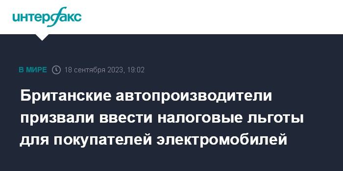 Москва. 18 сентября. INTERFAX.RU - Общество производителей и продавцов автомобилей Великобритании (SMMT) призвало правительство ввести налоговые льготы для частных лиц, желающих приобрести электрокары, с целью ускорения перехода на экологичный транспорт, сообщает Financial Times.
