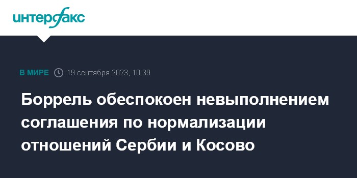 Боррель обеспокоен невыполнением соглашения по нормализации отношений Сербии и Косово