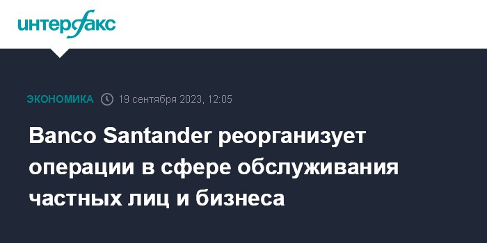 Banco Santander реорганизует операции в сфере обслуживания частных лиц и бизнеса