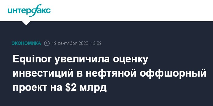 Equinor увеличила оценку инвестиций в нефтяной оффшорный проект на $2 млрд