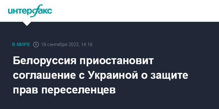 Белоруссия приостановит соглашение с Украиной о защите прав переселенцев