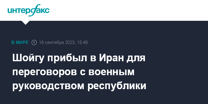 Москва. 19 сентября. INTERFAX.RU - Российская делегация во главе с министром обороны РФ Сергеем Шойгу прибыла во вторник в Тегеран для переговоров с военным руководством Исламской Республики Иран (ИРА), сообщает министерство обороны России.