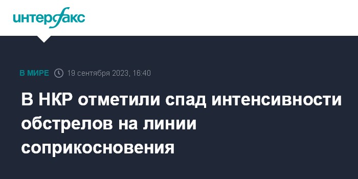 Москва. 19 сентября. INTERFAX.RU - Минобороны непризнанного Нагорного Карабаха сообщило, что на данный момент интенсивность огня на линии соприкосновения с ВС Азербайджана существенно снизилась.