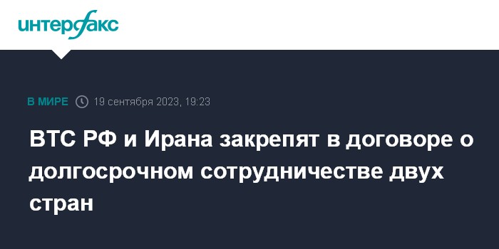 ВТС РФ и Ирана закрепят в договоре о долгосрочном сотрудничестве двух стран