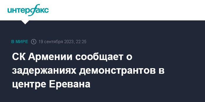 Москва. 19 сентября. INTERFAX.RU - Следственный комитет Армении сообщил о задержанных демонстрантах у здания правительства в Ереване.