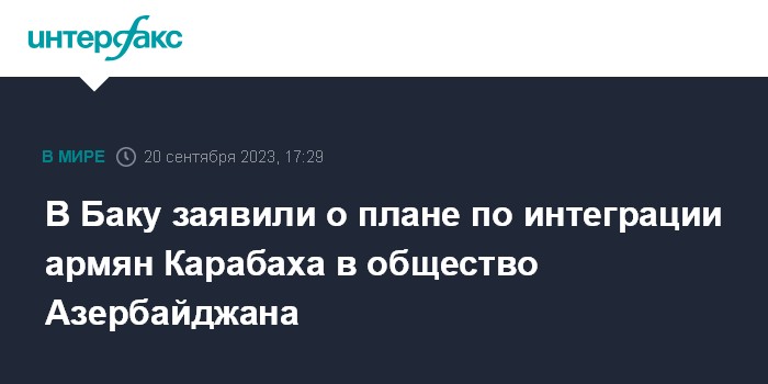 В Баку заявили о плане по интеграции армян Карабаха в общество Азербайджана