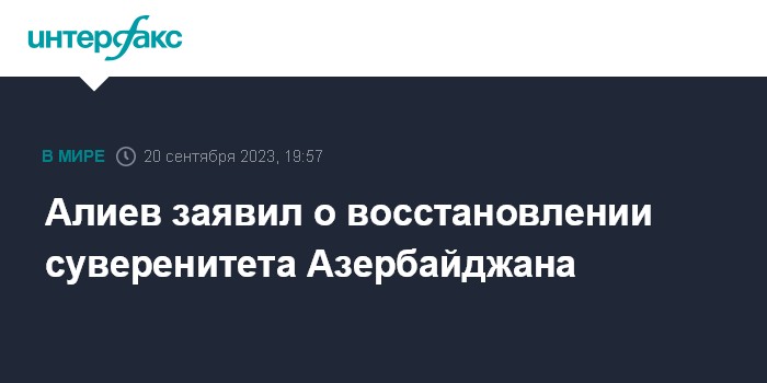 Москва. 20 сентября. INTERFAX.RU - Президент Азербайджана Ильхам Алиев заявил в видеообращении к народу, что в результате локальных антитеррористических мероприятий в Карабахском регионе Азербайджан восстановил свой суверенитет.