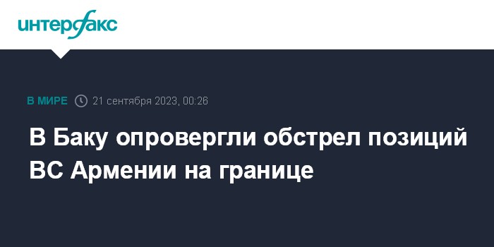 Москва. 21 сентября. INTERFAX.RU - Министерство обороны Азербайджана опровергло информацию оборонного ведомства Армении об обстреле азербайджанскими военными армянских позиций на границе.
