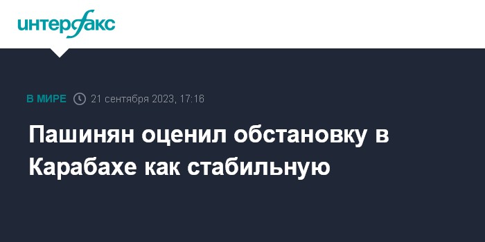 Москва. 21 сентября. INTERFAX.RU - Обстановка в Нагорном Карабахе, в целом, стабильная, несмотря на некоторые нарушения договоренности о прекращении огня, заявил премьер-министр Армении Никол Пашинян.