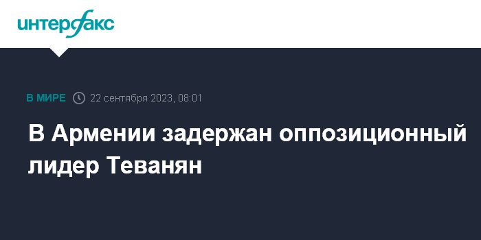 Москва. 22 сентября. INTERFAX.RU - Полиция Армении утром в пятницу задержала одного из лидеров оппозиции, руководителя блока "Мать Армения" Андраника Теваняна, сообщают местные СМИ.
