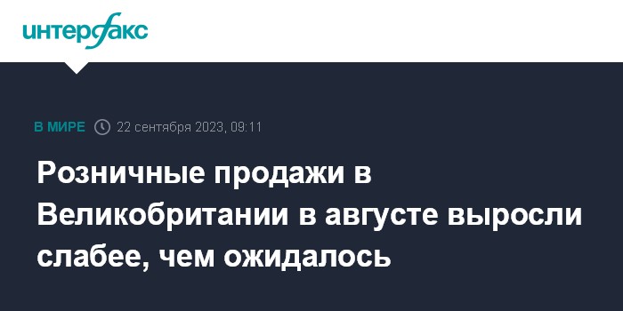 Розничные продажи в Великобритании в августе выросли слабее, чем ожидалось