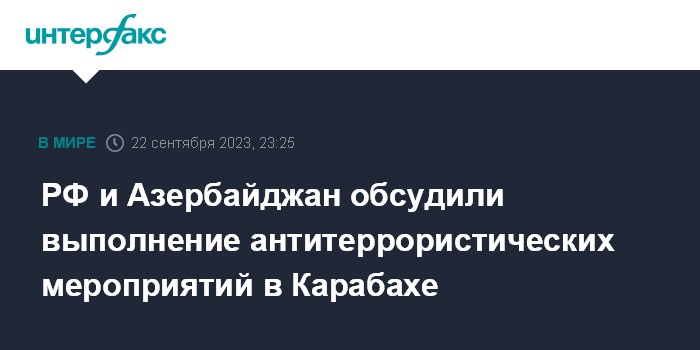 РФ и Азербайджан обсудили выполнение антитеррористических мероприятий в Карабахе