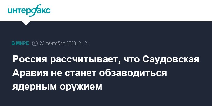 Россия рассчитывает, что Саудовская Аравия не станет обзаводиться ядерным оружием