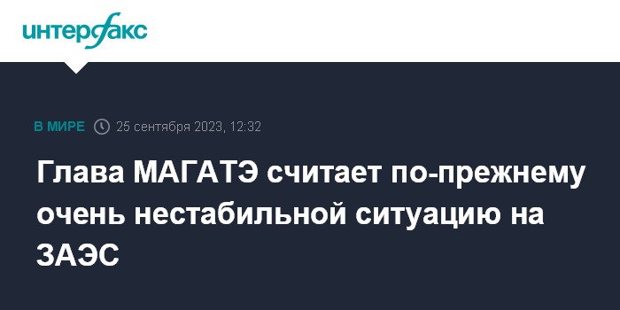 Москва. 25 сентября. INTERFAX.RU - На Запорожской АЭС сохраняется нестабильная обстановка, но МАГАТЭ оттуда не уходит, заявил на генеральной конференции агентства его руководитель Рафаэль Гросси.