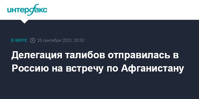 Москва. 25 сентября. INTERFAX.RU - Делегация контролирующего Афганистан движения "Талибан" (запрещенная в России террористическая организация) в понедельник вылетела в Москву, сообщил заместитель пресс-секретаря и помощник директора по связям с общественностью МИД талибов Хафиз Зия Ахмад.