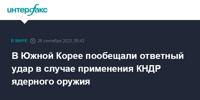 Москва. 26 сентября. INTERFAX.RU - Альянс Республики Корея и США положит конец северокорейскому режиму в случае, если КНДР применит ядерное оружие, заявил президент Южной Кореи Юн Сок Ель.