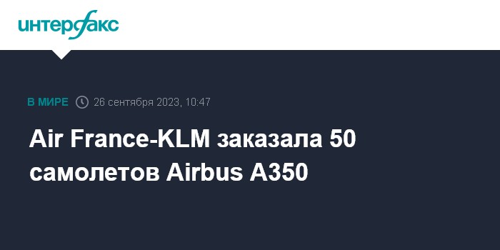 Москва. 26 сентября. INTERFAX.RU - Air France-KLM заказала 50 самолетов Airbus моделей A350-900 и A350-1000 для обновления своего флота, сообщается в пресс-релизе франко-голландской авиакомпании.