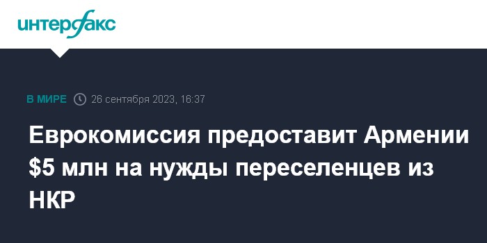 "Еврокомиссия ожидает массового исхода людей из Нагорного Карабаха в Армению и в связи с создавшимся кризисом предоставит 5 миллионов евро для удовлетворения потребностей этих людей", - говорится в публикации.