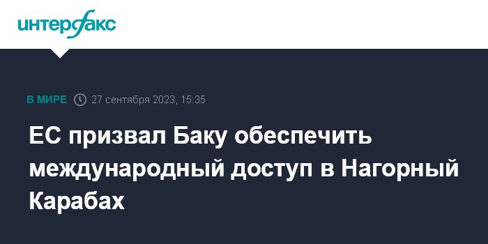 ЕС призвал Баку обеспечить международный доступ в Нагорный Карабах