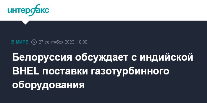 Белоруссия обсуждает с индийской BHEL поставки газотурбинного оборудования