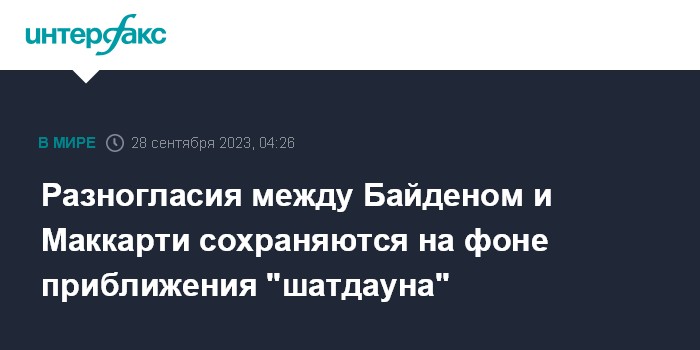 Разногласия между Байденом и Маккарти сохраняются на фоне приближения "шатдауна"