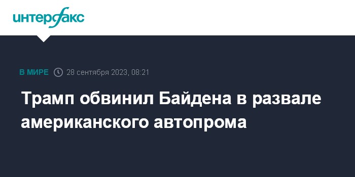 Москва. 28 сентября. INTERFAX.RU - Бывший президент США Дональд Трамп, планирующий участвовать в выборах 2024 года, выступая в штате Мичиган, подверг критике президента Джо Байдена, обвинив его в развале автомобилестроительной промышленности в стране.