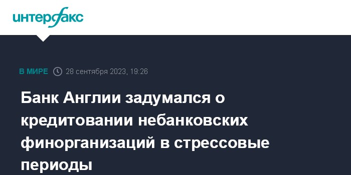 Москва. 28 сентября. INTERFAX.RU - Банк Англии планирует создать постоянный механизм кредитования небанковских финансовых организаций (НБФО), таких как страховщики и пенсионные фонды, в стрессовые периоды, заявил в четверг исполнительный директор по рынкам ЦБ Эндрю Хаузер.
