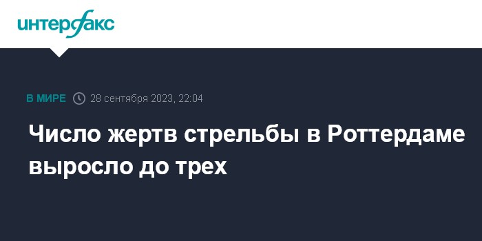 Москва. 28 сентября. INTERFAX.RU - В результате стрельбы в жилом доме и медицинском центре Университета имени Эразма Роттердамского погибли как минимум три человека, сообщает в четверг BBC со ссылкой на нидерландскую полицию.
