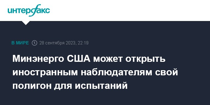 Минэнерго США может открыть иностранным наблюдателям свой полигон для испытаний