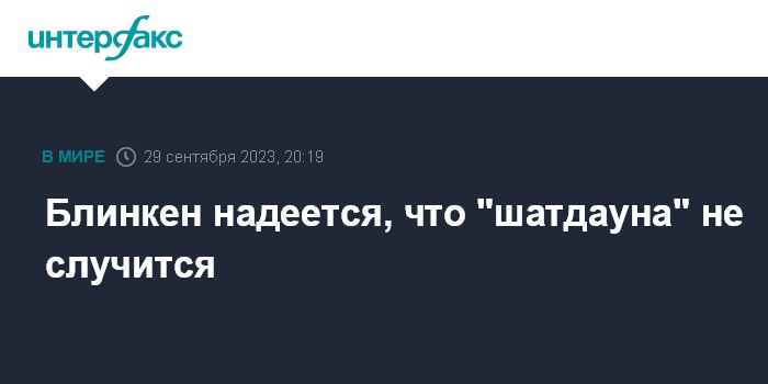 Москва. 29 сентября. INTERFAX.RU - Госсекретарь США Энтони Блинкен надеется, что "шатдауна" удастся избежать, но даже если он случится, Госдепартамент будет стараться продолжать решать вопросы, касающиеся национальной безопасности.