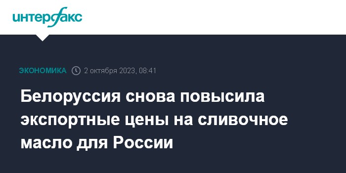Москва. 2 октября. INTERFAX.RU - Министерство сельского хозяйства и продовольствия Белоруссии изменило минимальные экспортные цены на сливочное масло, которое поставляется в Россию.