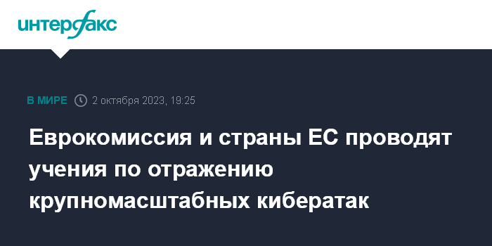 Москва. 2 октября. INTERFAX.RU - Еврокомиссия (ЕК) объявила в понедельник о начале учений с моделированием крупномасштабных кибератак, которые предстоит "отразить".