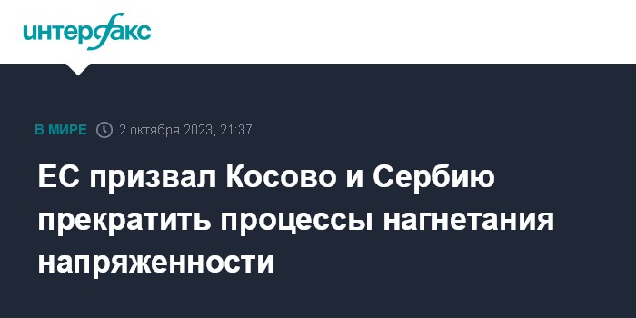 Москва. 2 октября. INTERFAX.RU - Официальный представитель главы дипломатии ЕС Жозепа Борреля Петер Стано заявил о необходимости остановить нагнетание напряженности в Косово.