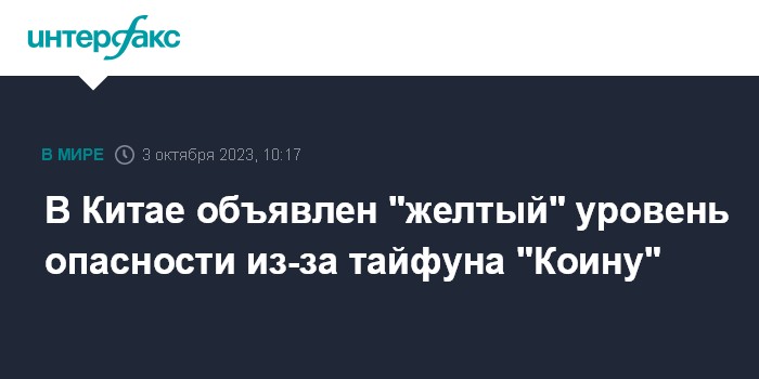 Москва. 3 октября. INTERFAX.RU - Власти Китая во вторник утром объявили "желтый" уровень опасности в связи с приближением тайфуна "Коину", ожидают штормы и жаркую погоду, сообщает South China Morning Post.