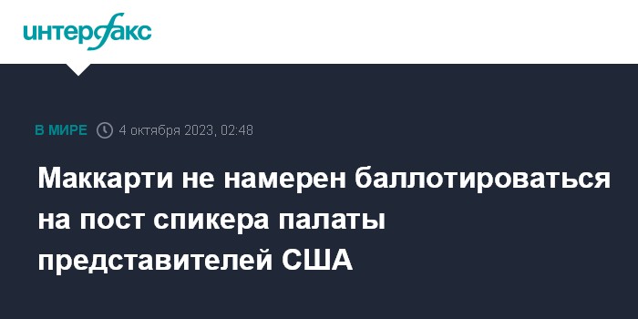 Между тем временный спикер нижней палаты Конгресса США Патрик Макгенри сообщил, что начнет голосование по кандидатуре спикера 11 октября, на следующий день после форума кандидатов.